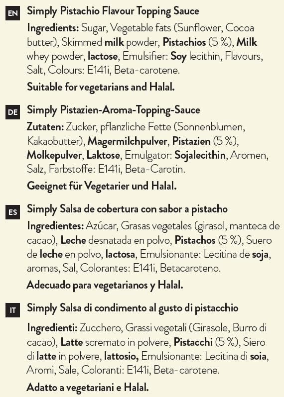 If you are looking for the perfect topping for your desserts and hot drinks, then this Pistachio sauce from Simply is absolutely perfect for the job. Supplied in a handy squeezable 1kg bottle, they are the perfect size for all catering and home use.